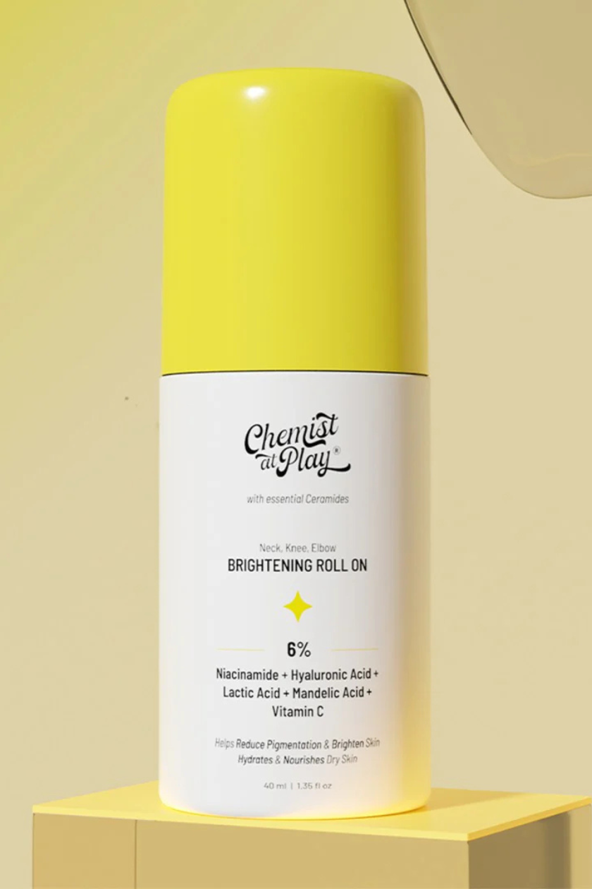 Tired of dealing with dark neck, elbows, and knees? Say hello to the Chemist At Play Neck Knee & Elbow Brightening Roll On, a quick-absorbing and fuss-free solution that exfoliates, brightens and nourishes your skin. Whether it’s neck pigmentation, elbow darkness removal or knee pigmentation, this roll on targets stubborn spots with skin-loving actives like Mandelic Acid, Niacinamide, Vitamin C and Ceramides. It works on all skin types, helps restore even tone and keeps rough patches hydrated and smooth.