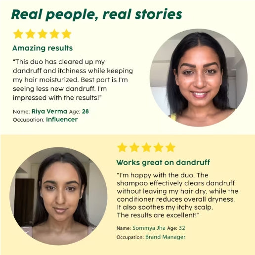 With regular use, experience up to 8 weeks of visible dandruff reduction, smoother strands, and lasting scalp comfort. The perfect duo for clear, flake-free, and soft hair — powered by nature and backed by science.