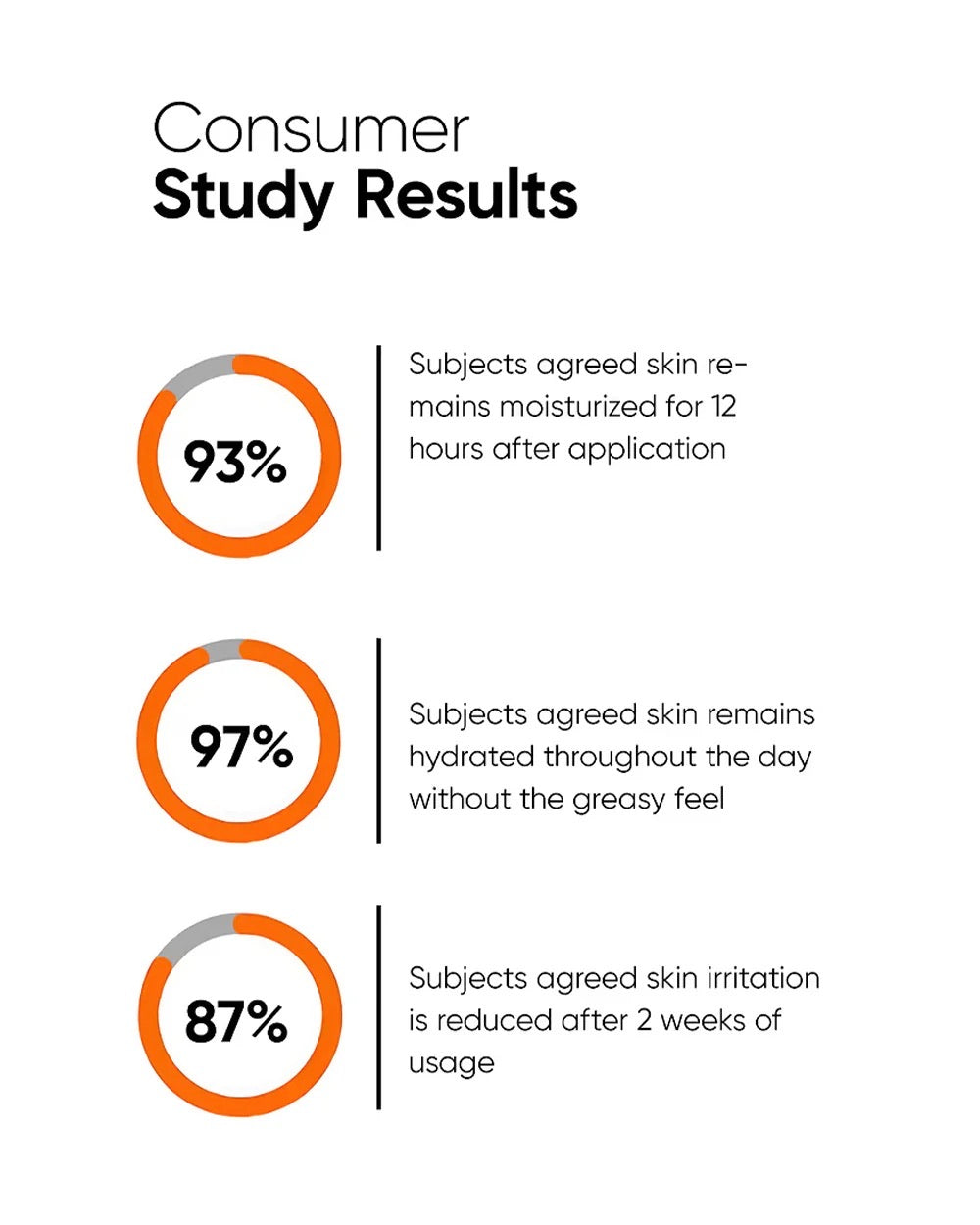 - A very high concentration of Vitamin B5 / Panthenol (at 10%) for deep, oil-free moisturization and repairing skin